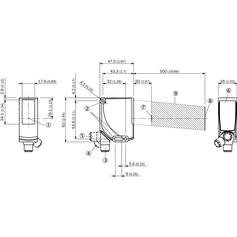 Détecteur de couleur; Format: Parallélépipédique; Sortie (canal): 2 couleurs; Distance de détection: 50 mm ... 500 mm; Source d'émission: LED, RGB; Taille du spot lumineux: Ø 8 mm ... 32 mm; Émission de lumière: Côté long du boîtier; Sortie de commutation: Push-pull (PNP/NPN); Interface de communication: IO-Link; Raccordement: Connecteur mâle M12, 5 pôles; Tension d'alimentation: 10,8-28,8Vdc; Dimensions (l x H x P): 26 mm x 62 mm x 47,5 mm; Matériau du boîtier: Plastique, VISTAL®; Matériau de l'optique: Verre; Indice de protection: IP67; Température de fonctionnement: –20 °C ... +55 °C; Série: CSS High Resolution
