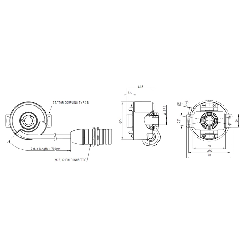 • Type de raccordement : connecteur mâle M12, M23, câble, câble avec connecteur mâle M12, M23