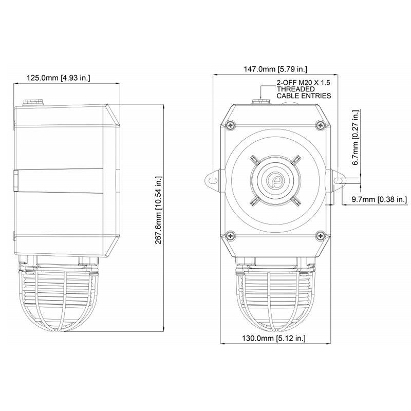 Combiné LED/119dB Fonte d'alu IP66 230 ±10% Vca - Orange
