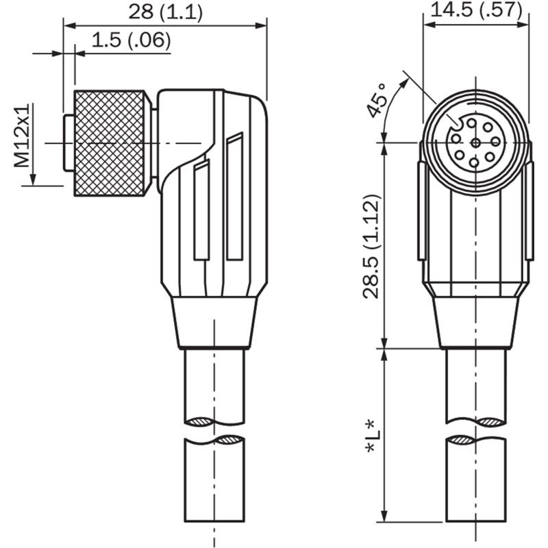 • Raccordement A: Connecteur M12, femelle, coudé, 8 pôles