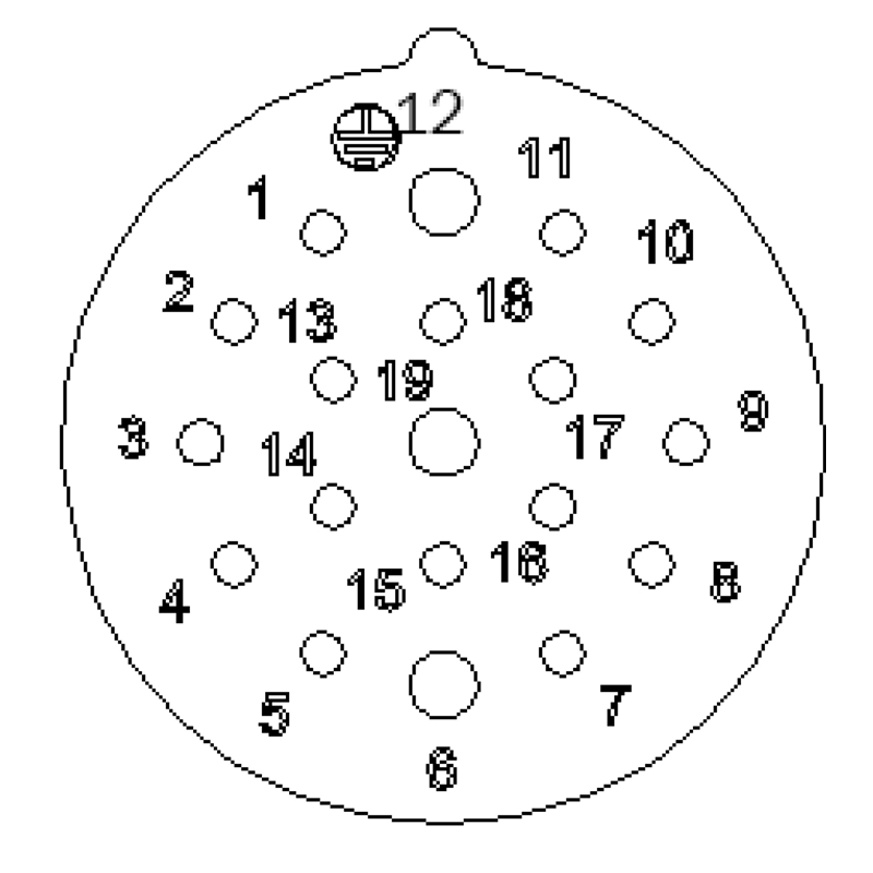 • Raccordement tête A: Connecteur femelle, M23, 19 pôles, coudé