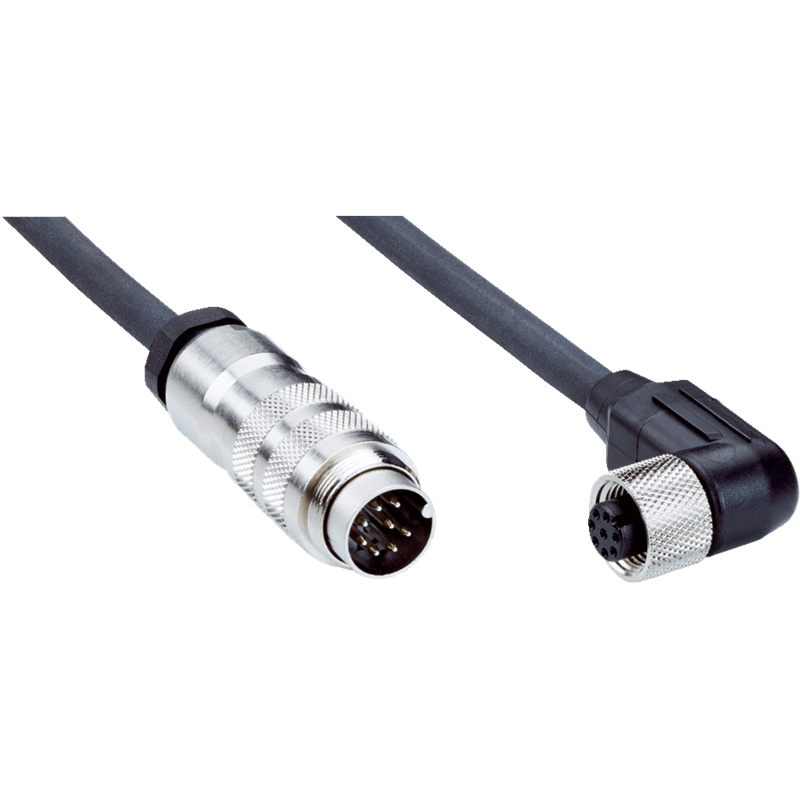 Connecteur / Câble de raccordement; Type: Câble de connexion; Raccordement A: Connecteur M12, femelle, 8 pôles, coudé; Raccordement B: Connecteur mâle, M16, 8 pôles, droit; Câble: 0,4 m, 8 fils, PUR, sans halogène; Description: RS-422, SSI, blindé