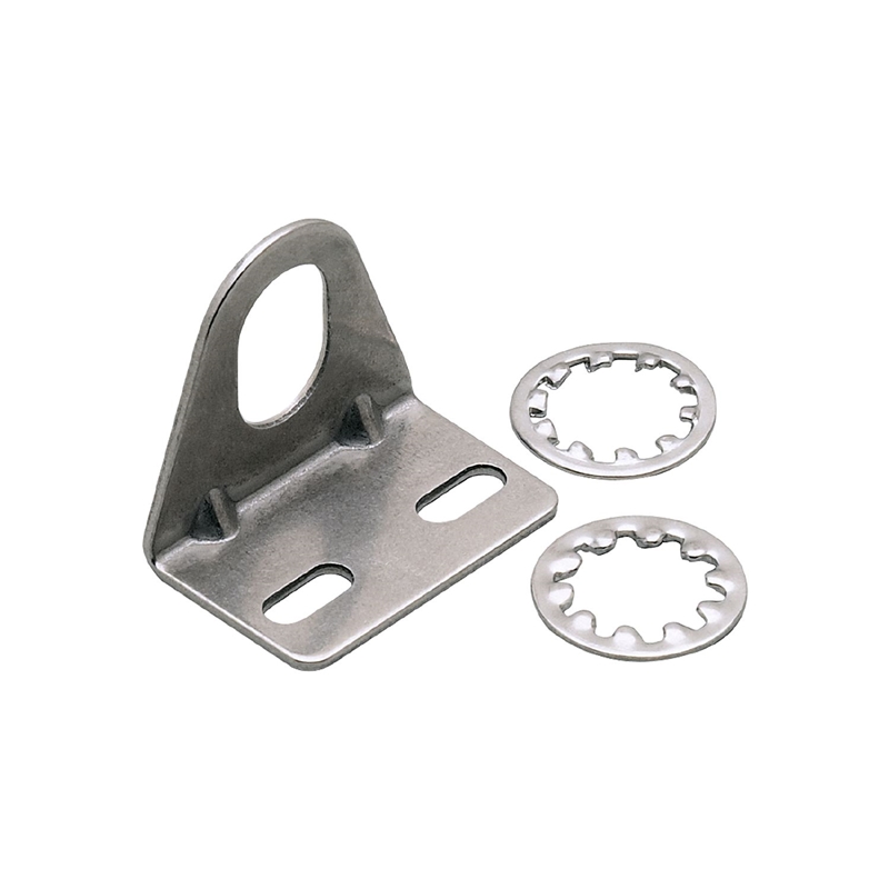 Equerre de fixation pour M18; Dimensions: 42 x 48 x 28 mm; Matières: Inox (1.4301/304); Fourniture: Rondelles crantées: 2 x Ø 18 mm