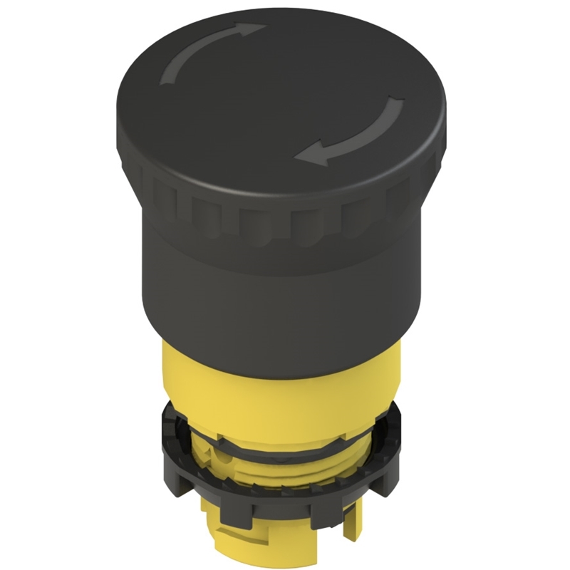 Bouton “coup de poing” noir, déverrouillage par rotation; Signalisation: Aucune; Forme: Ø 40 mm; Couleur du corps: Jaune; Fonction et couleur: Déverrouillage par rotation, noir; Degré de protection: IP67 selon EN 60529 et IP69K selon ISO 20653; Température ambiante: -40°C ... +80°C; Série: EROUND