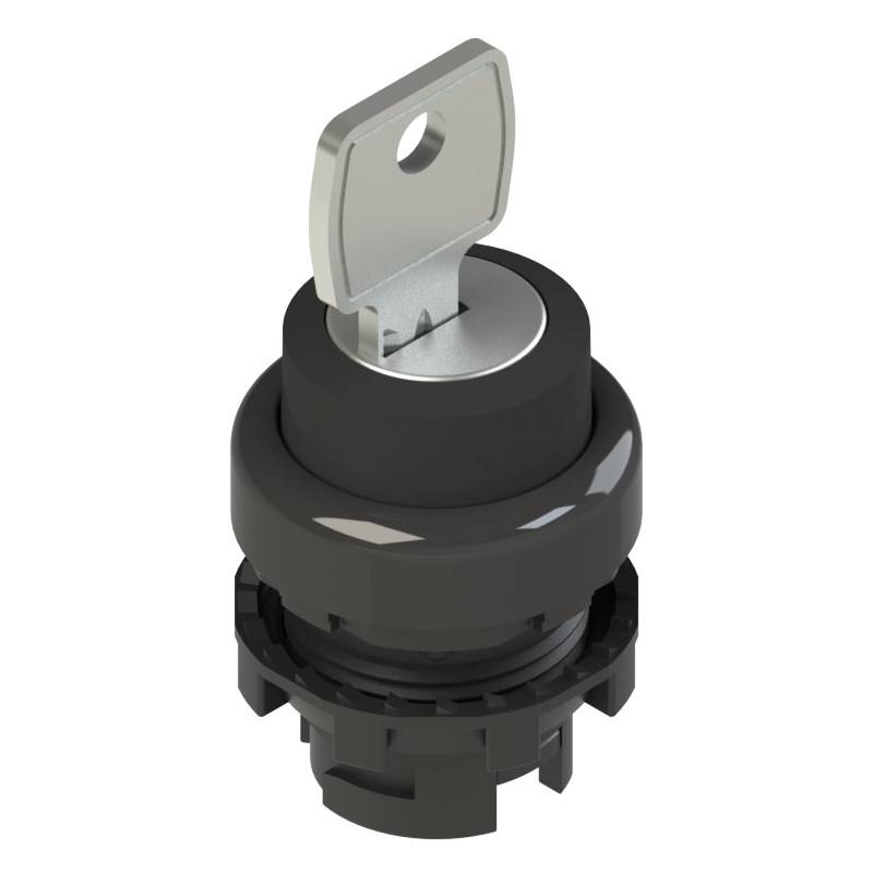 Sélecteur à clé, 2 positions, noir sans marquage; Forme: À clé; Fonction: 2 positions; Clé: PY333; Couleur: Noir; Collerette: Noir; Marquage: Sans marquage; Degré de protection: IP67 selon EN 60529 et IP69K selon ISO 20653; Température ambiante: -25°C ... +80°C; Série: EROUND