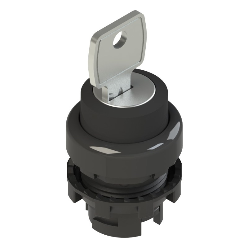 Sélecteur à clé, 2 positions, noir sans marquage; Fonction: 2 positions; Clé: Clé codification 333 (standard); Couleur: Noir; Collerette: Noir ; Marquage: Sans marquage; Degré de protection: IP67 selon EN 60529 et IP69K selon ISO 20653; Température ambiante: -25°C ... +80°C; Série: EROUND