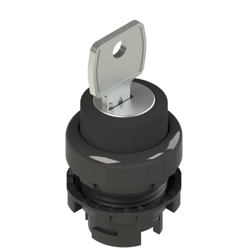Sélecteur à clé, 3 positions, noir sans marquage; Forme: À clé; Fonction: 3 positions; Couleur: Noir; Collerette: Noir; Marquage: Sans marquage; Degré de protection: IP67 selon EN 60529 et IP69K selon ISO 20653; Température ambiante: -25°C ... +80°C; Série: EROUND
