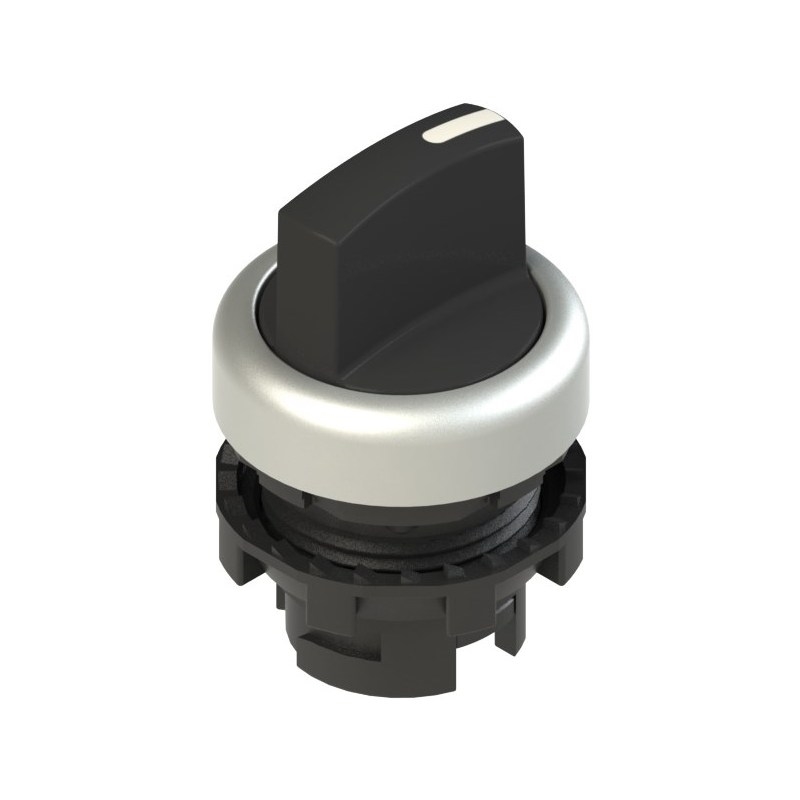 Sélecteur à manette, 3 positions, noir avec marquage; Forme: À manette; Fonction: 3 positions; Couleur: Noir; Collerette: Chromé; Marquage: Avec marquage; Degré de protection: IP67 selon EN 60529 et IP69K selon ISO 20653; Température ambiante: -25°C ... +80°C; Série: EROUND