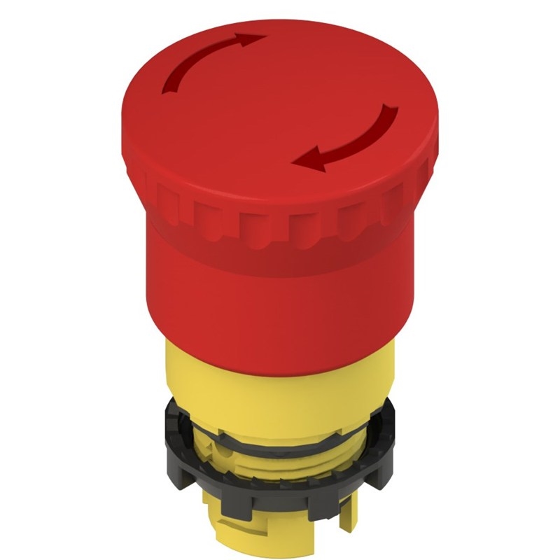 Bouton arrêt d'urgence avec déverrouillage par rotation; Signalisation: Aucune ; Forme: Ø 40 mm ; Bague de fixation et anneau: Bague en plastique et anneau façonné; Fonction: Déverrouillage par rotation ; Degré de protection: IP67 selon EN 60529 et IP69K selon ISO 20653; Température ambiante: -25°C ... +80°C (standard); Série: EROUND