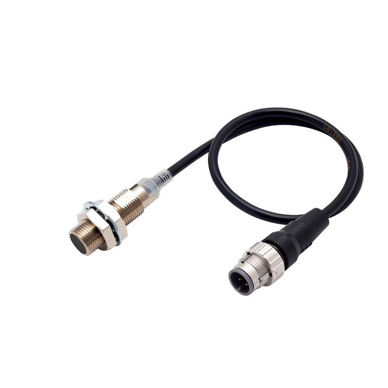 Détecteur de proximité inductif; Format: Cylindrique fileté, M12 x 1; Version électrique: 3 fils DC; Distance de commutation Sn: 4 mm; Montage: Noyable; Sortie de commutation: NPN; Type de commutation: Contact à fermeture (NO); Fréquence de commutation: 1.000 Hz; Interface de communication: -; Raccordement: Connecteur mâle M12 Smartclick 4 pôles avec câble 0.3 m; Tension d'alimentation: 10-30Vdc; Diamètre: Ø 12 mm; Longueur totale du boîtier: Corps court; Matériau du boîtier: Laiton nickelé; Matériau, surface active: PBT; Indice de protection: IP67 (IEC 60529), IP69K (ISO 20653); Température de fonctionnement: –25 °C ... +70 °C; Série: E2E Next