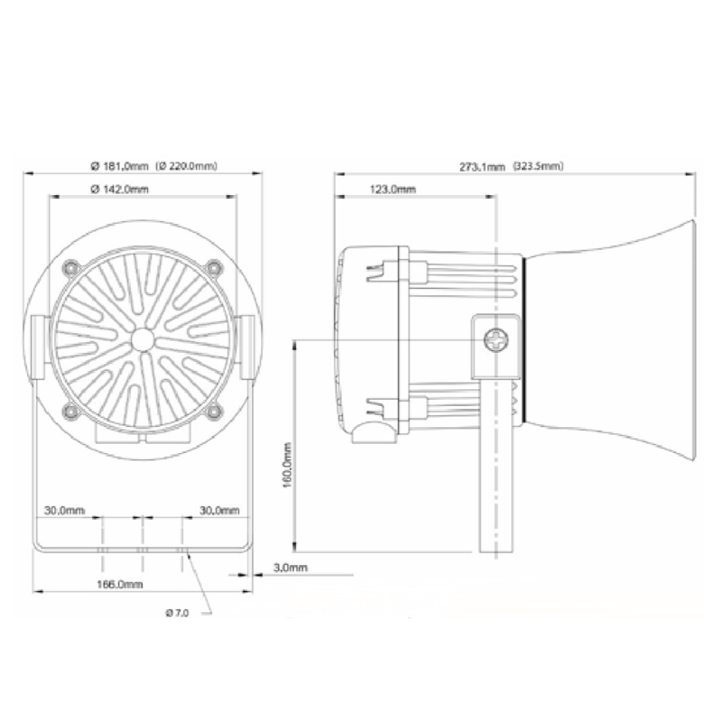 Sirène électronique Ex 121dB Zone 2 230Vca 76mA 45 sons IP66 IP67