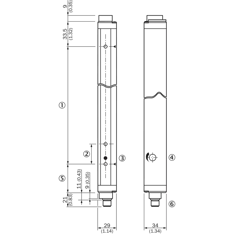 Rideau d'automatisation commutable; Principe du capteur: Émetteur / récepteur; Portée de travail: 12 m; Entraxe des faisceaux: 60 mm; Hauteur de détection: 900 mm; Plus petit objet détectable (MDO): 65 mm (Faisceau parallèle); Sortie de commutation: 2 x PNP; Mode de commutation: Commutation sombre; Temps de réponse: 28 ms; Mode de raccordement: Connecteur mâle M12, 4 pôles; Tension d'alimentation: 15-30Vdc; Dimensions (l x H x P): 34 mm x 976 mm x 29 mm; Matériau du boîtier: Aluminium; Indice de protection: IP65; Température de fonctionnement: –25 °C ... +55 °C; Série: ELG