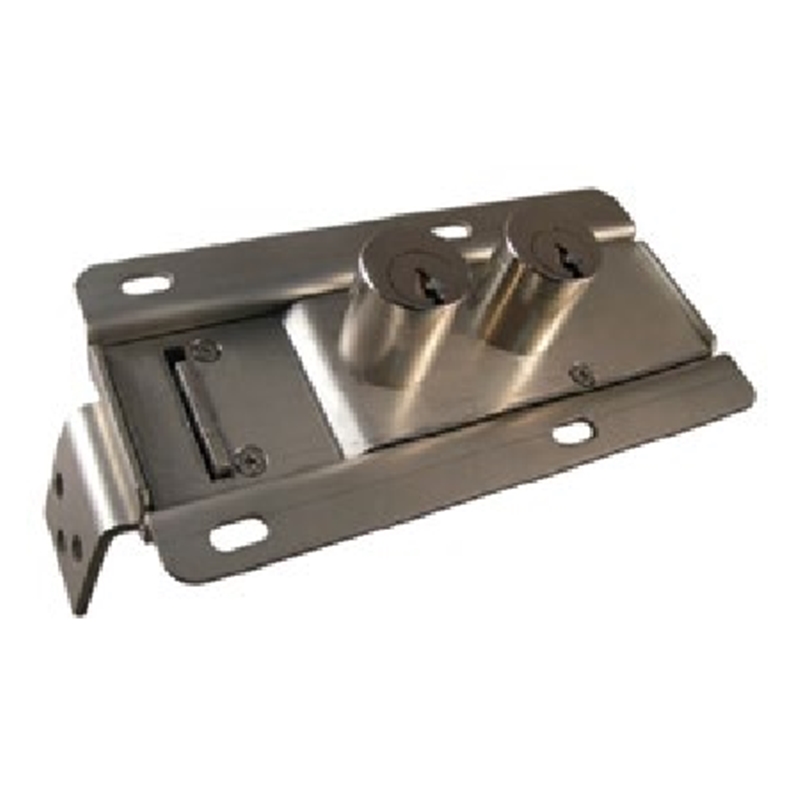 Serrure d'accés à 2 clés; Porte fermée : gâche introduite - Clé 1 libre et Clé 2 prisonnière; Porte ouverte : Clé 1 prisonnière et Clé 2 libre; Materiau: - Boîtier en inox, - Cylindre nickelé et chromé, - Clé en métal