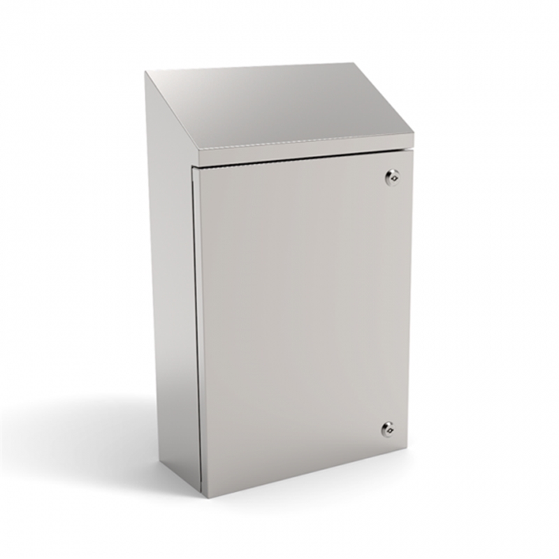 Coffret en acier inoxydable, 380 600 200 (LxHxP), inox AISI 304, IP66, toit incliné