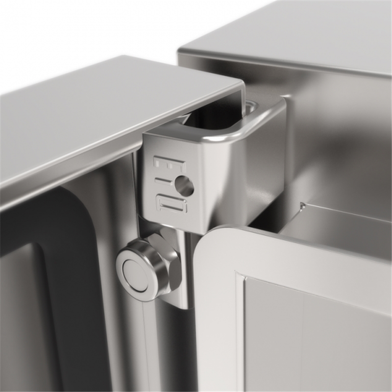 Coffret EQH 380 600 200 (LxHxP); En acier inoxydable aisi 304 satiné brossé; Porte pleine avec charnières; Charnières en acier inoxydable; Verrouillage en acier inoxydable 304 avec insert triangulaire CXT 84; Toit incliné 30°; Fixation arrière par inserts aveugles M6; Plaque de fond en Fe/Zn ep.25/10; Degré de protection IP66; Série EQH
