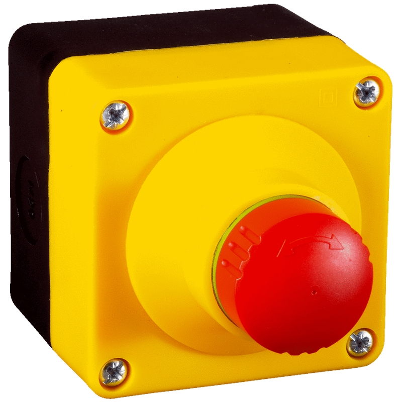 Les dispositifs d'arrêt d'urgence ES21 sont obligatoires dans les machines et installations automatisées. Ils permettent à une personne d'arrêter une machine ou une installation en cas d'urgence. Selon la variante, les dispositifs d'arrêt d'urgence sont intégrés dans le pupitre de commande de la machine ou montés directement sur la machine.