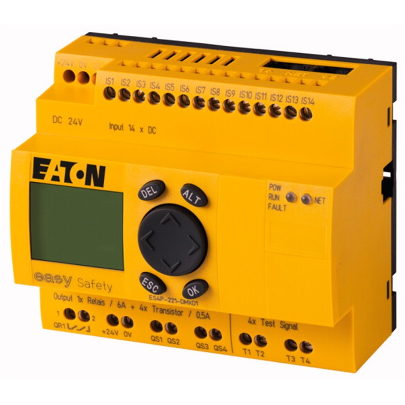 Modules logiques de sécurité, 24V DC, 14 entr. TOR 4 sort. TOR à trans., 1 sort.TOR à relais, afficheur, easyNet