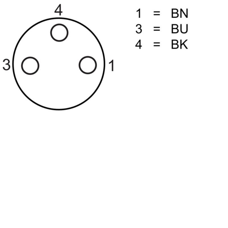 • Raccordement A: Connecteur Ø 8 mm, femelle, droit, 3 pôles