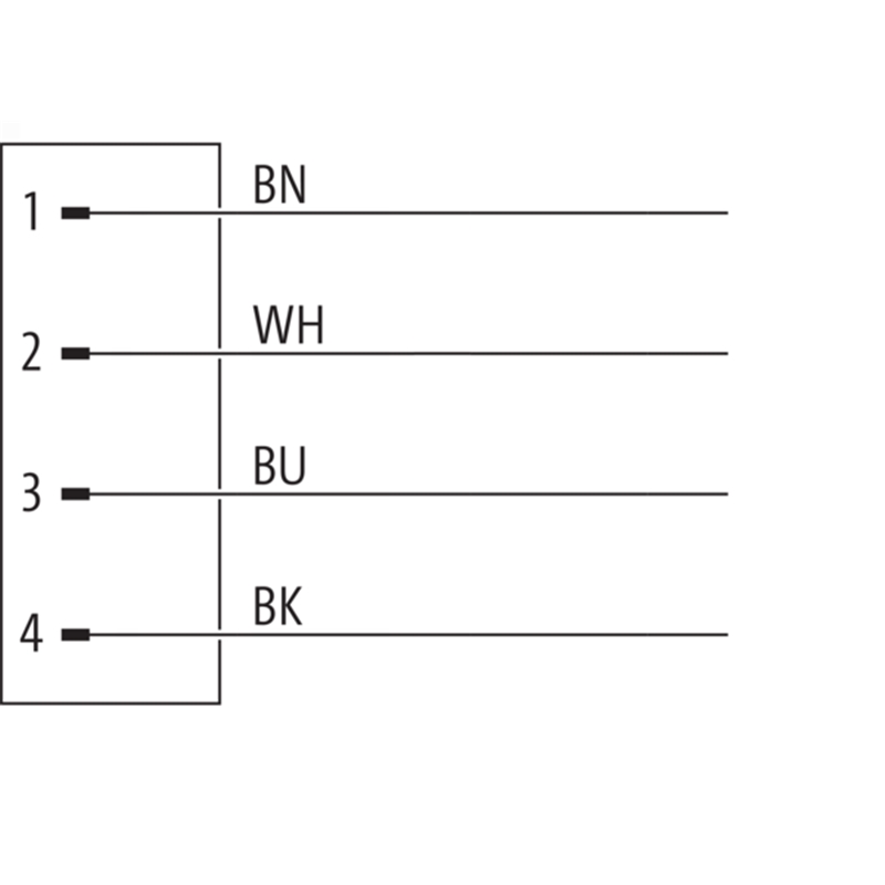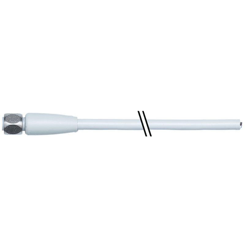 Connecteur / Câble de raccordement; Type: Câble de connexion, M8 x 1, Écrou d'adaptation en acier V4A; Type de signal: Capteur / Actionneur; Raccordement A: Connecteur M12, femelle, droit, 4 pôles, codé A; Raccordement B: Extrémité de câble libre; Câble: 2 m, 4 fils (4 x 0.34 mm²), PP, gris clair; Blindage: Non blindé; Compatible chaines porte-câble: Oui (4 mio.), 10 m/s²; Tension de mesure: max. 250 V; Charge électrique: 4 A; Indice de protection: IP65, IP67, IP68, IP69; Température de service:- En mouvement: –25 °C ... +105 °C- En position fixe: -40 °C ... +105 °C- Mode chaîne porte-câble: –25 °C ... +60 °C; Domaine d'utilisation: Food & Beverage