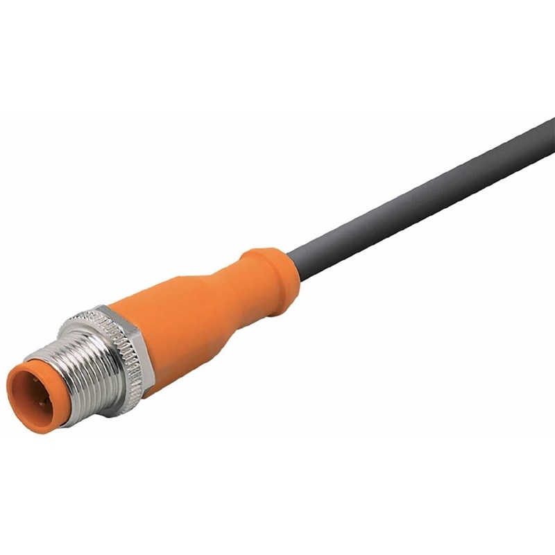 Connecteur / Câble de raccordement; Type: Câble de connexion, M12 x 1; Raccordement A: Connecteur M12, mâle, droit, 4 pôles, codé A; Raccordement B: Extrémité de câble libre; Câble: 5 m, PUR, sans halogène, noir, Ø 4,3 mm; 4 x 0,34 mm² (42 x Ø 0,1 mm ); Blindage: Non blindé; Aptitude pour des câbles en mouvement: Oui; Corps de poignée: TPU orange; Matériau de l'écrou-raccord: Laiton, nickelé; Tension de mesure: < 250 VAC / < 300 VDC; Charge électrique: 4 A; Degré de protection: IP 65, IP 67, IP 68, IP 69K; Température de service: -25...90 °C; Température de service (câble, fixe): -25...90 °C; Température de service (câble, en mouvement): -25...90 °C
