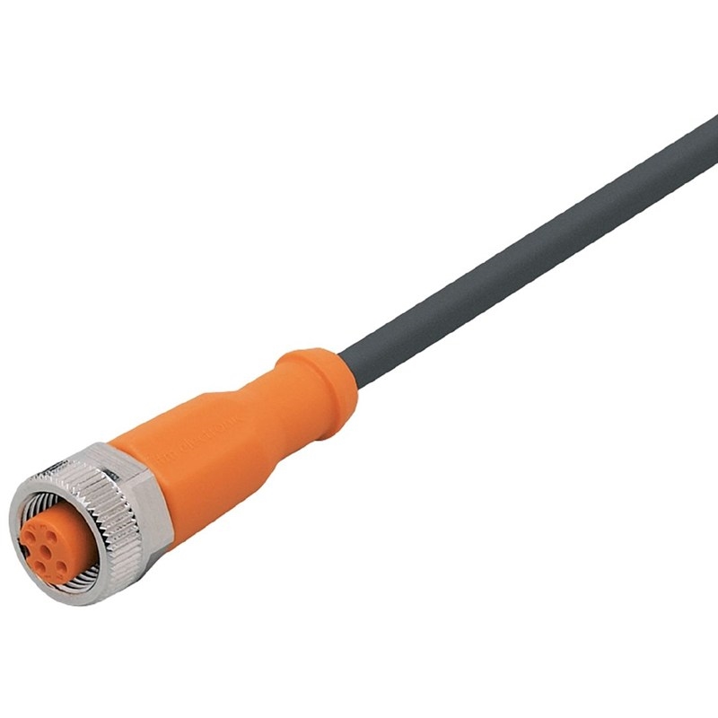 Connecteur / Câble de raccordement; Type: Câble de connexion, M12 x 1; Raccordement A: Connecteur M12, femelle, droit, 3 pôles, codé A, contacts doré; Raccordement B: Extrémité de câble libre; Câble: 5 m, PVC, noir, Ø 4,5 mm, 3 x 0,25 mm² (14 x Ø 0,15 mm); Blindage: Non; Aptitude pour des câbles en mouvement: Non; Matériau, connecteur: TPU orange; Matériau, écrou moleté: Laiton, nickelé; Couple de serrage: 0,6...1,5 Nm; Tension d'alimentation: < 250 VAC / < 300 VDC; Courant de sortie total: 4 A; Indice de protection: IP 65, IP 67; Température ambiante: -25...70 °C