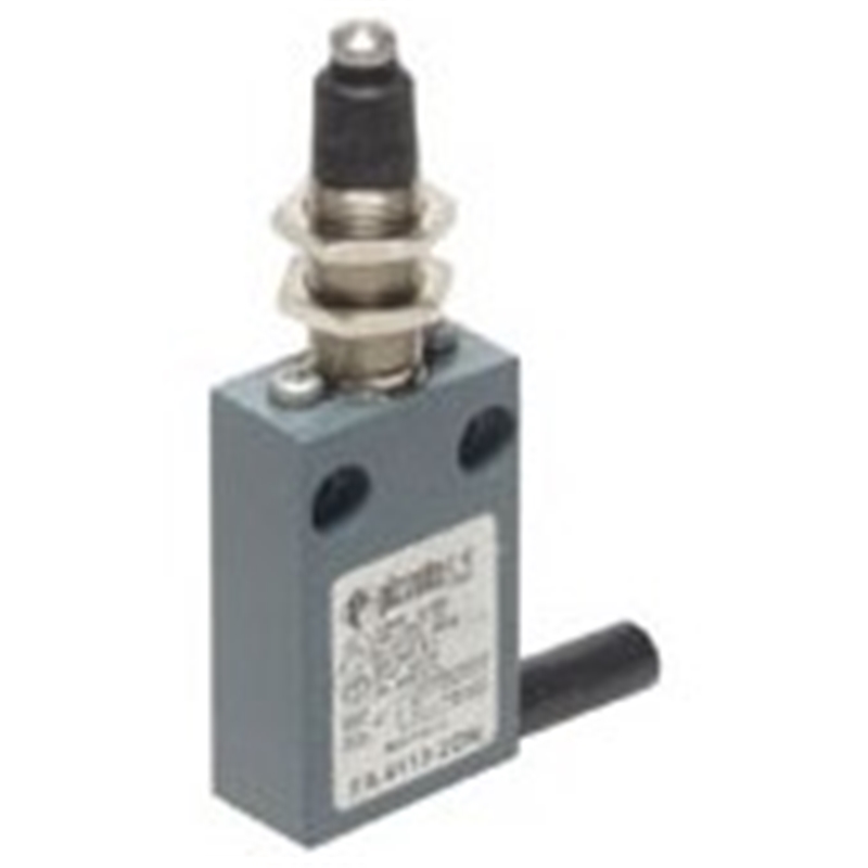 Interrupteur précablé à poussoir fileté et protégé; Boîtier: Boîtier en métal, entr'axe trous 20 mm, IP67; Blocs de contact: 1NO+1NC rupture brusque; Tête: A poussoir fileté avec joint en caoutchouc externe; Type de câble ou connecteur: Câble EN 50265.1 noir; Connexion (direction de la sortie): Radiale; Longueur de câble: 2 m; Type de contacts: Contacts en argent; Série: FA