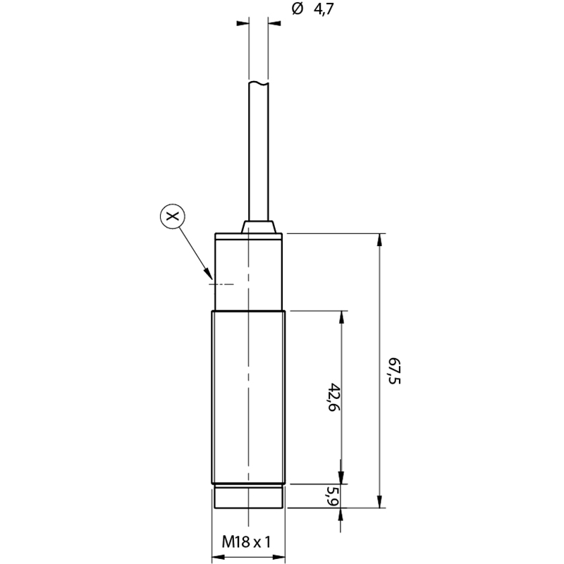 • Format: Cylindrique fileté, M18 x 1, faisceau axial