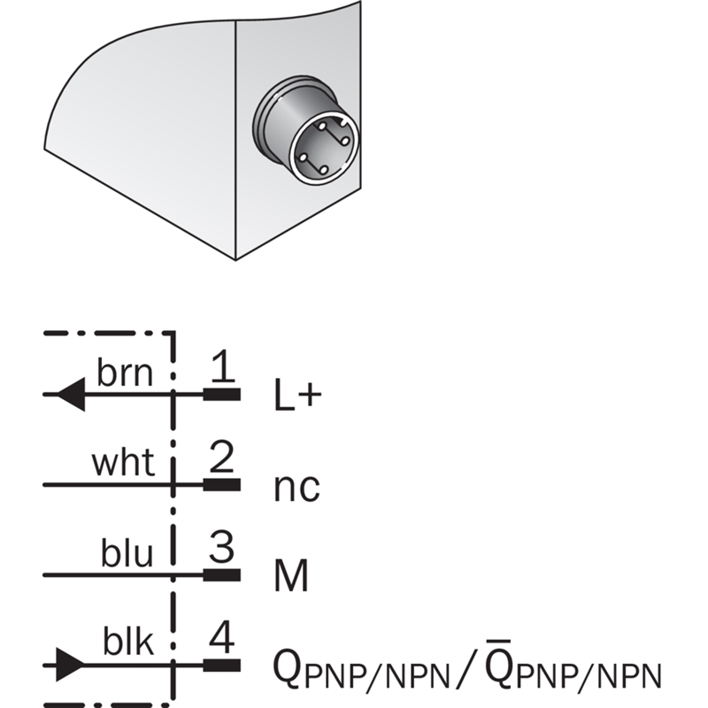 • Raccordement: Connecteur mâle M12, 4 pôles
