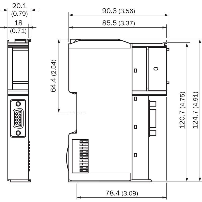• Dimensions (l x H x P): 18 mm x 124,7 mm x 85,5 mm