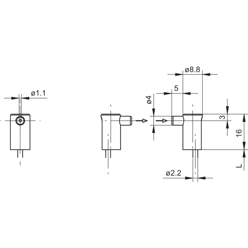 Fibre optique de verre/barrière simple; Tête coudée 9*16 - longueur de fibre 50cm - 2*1; Version température standard; Distance de commutation max: 450 mm