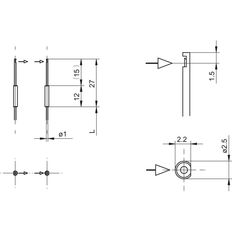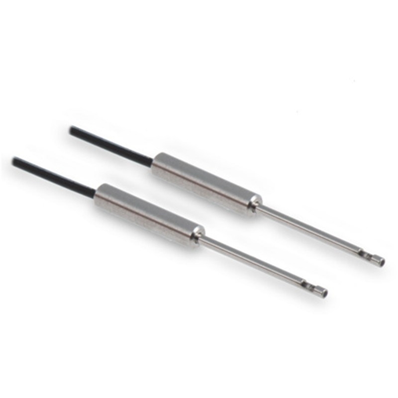 • Tête de détection cylindrique lisse ø2,5 mm, avec manchon fin ø1 mm, sortie latérale de la lumière