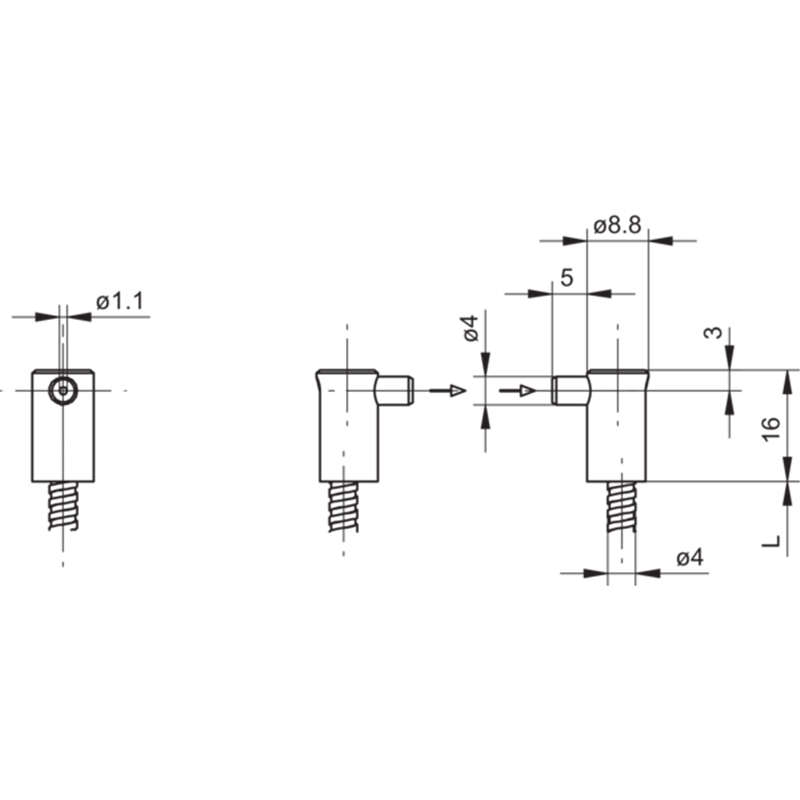 • Tête de détection cylindrique lisse ø4 mm, sortie latérale de la lumière