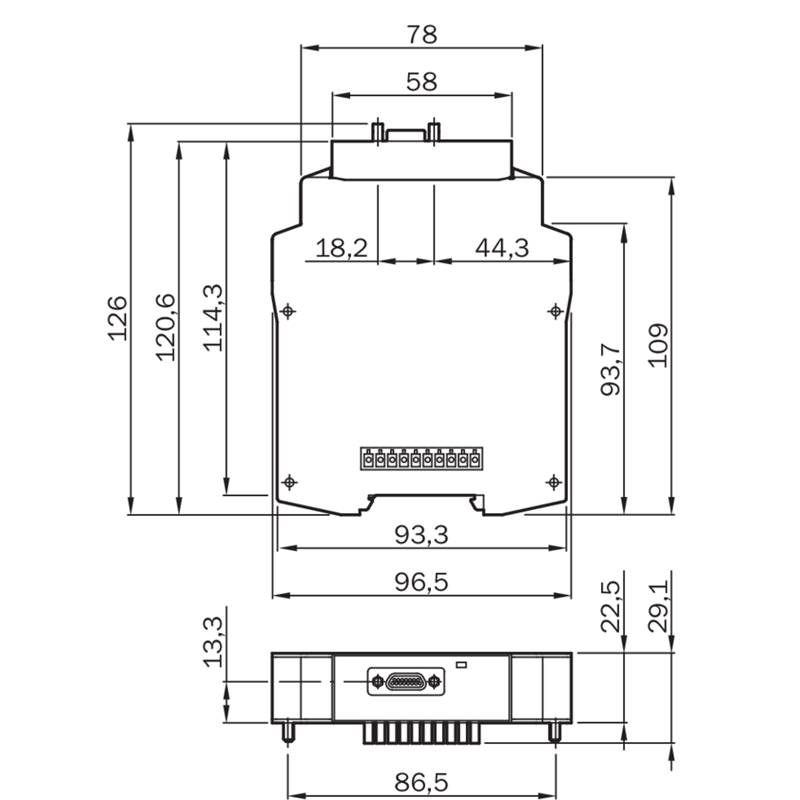Système de commande de sécurité; Module: Module Motion Control; Raccordement: Connecteur mâle, Micro Sub-D, 15 pôles; Interface du codeur: Codeur incrémental A / B, TTL, Codeur incrémental A/B, HTL 12 V ou 24 V, Codeur incrémental A / B, RS-422, Codeur sin/cos, Codeur SSI (maître / listener); Fonctions de sécurité des entraînements: Arrêt sûr 1 (SS1), arrêt sûr 2 (SS2), mode de fonctionnement sûr (SOS), surveillance sûre de la vitesse (SSM), limitation sûre de vitesse (SLS), sens de déplacement sûr (SDI), commande de freinage sûre (SBC), came sûre (SCA), Limitation sûre de position; Série: Flexi Soft