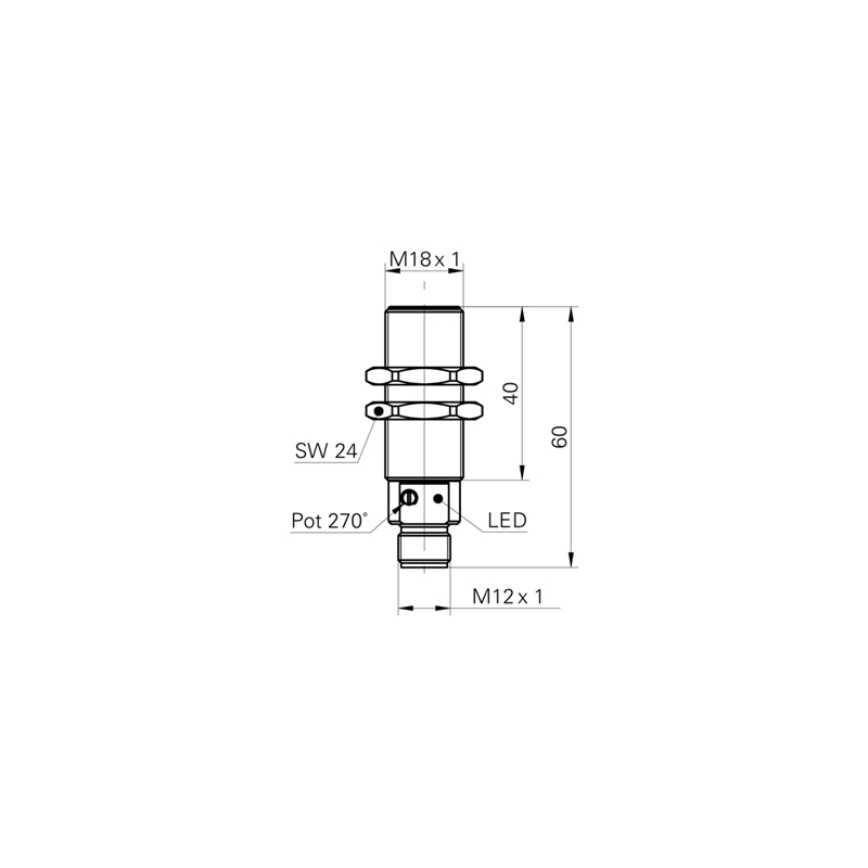 Capteur photoélectrique; Format: Cylindrique fileté, M18 x 1; Principe du capteur: Détecteur à réflexion directe; Principe de détection: Énergétique; Distance de commutation max.: 430 mm; Réglage: Potentiomètre, 270°; Source d'émission: LED, Lumière infrarouge; Sortie de commutation: PNP; Mode de commutation: Commutation claire; Interface de communication: -; Raccordement: Connecteur mâle M12, 4 pôles; Tension d'alimentation: 10-30Vdc; Dimensions: Ø 18 x 60 mm; Matériau du boîtier: Laiton nickelé/ PC; Indice de protection: IP67; Température de fonctionnement: -25 ... +55 °C