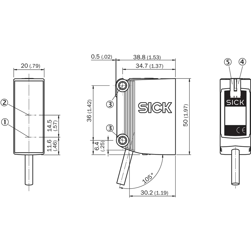 • Boîtier de capteur robuste avec orifices de montage renforcés avec du métal