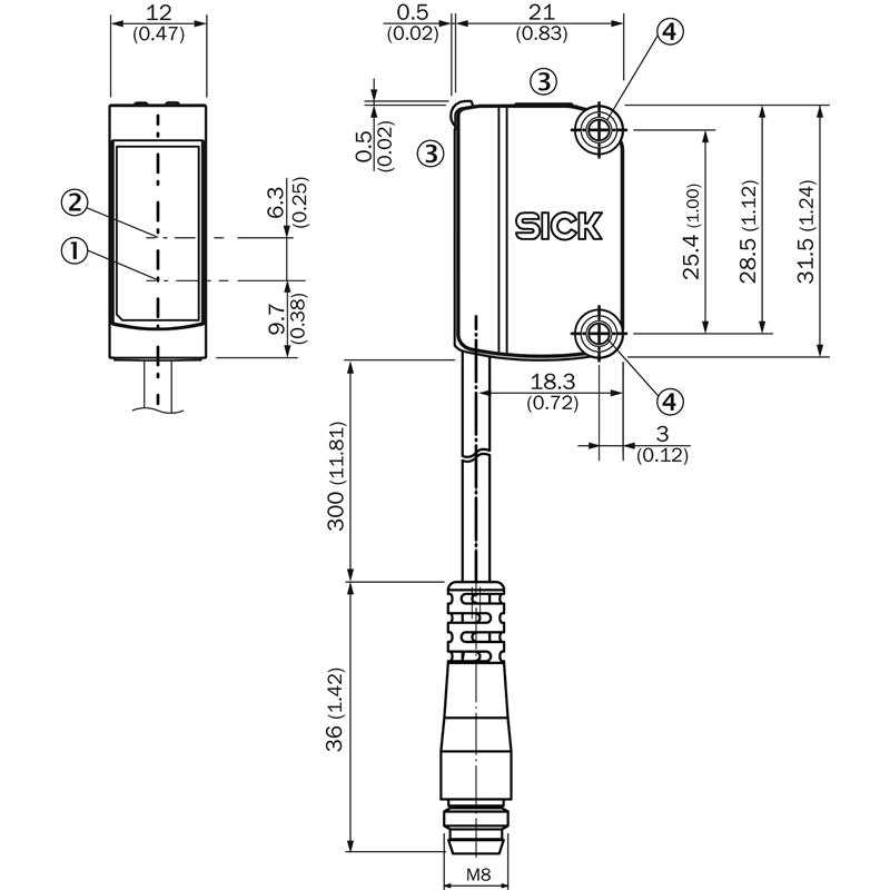 • Raccordement: Câble avec connecteur mâle M8, 4 pôles, 336 mm, PVC