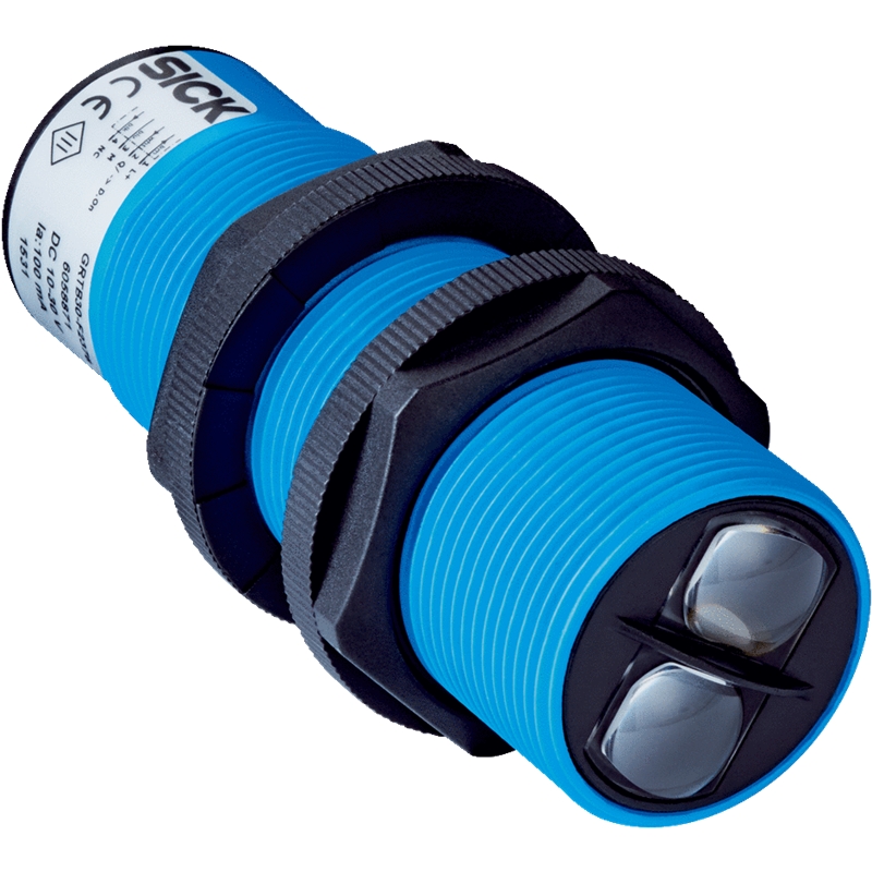 Capteur photoélectrique; Format: Cylindrique fileté, M18 x 1; Principe du capteur: Détecteur à réflexion directe; Principe de détection: Atténuation d'arrière-plan; Distance de commutation max.: 20 mm ... 1.500 mm; Réglage: Aucun; Source d'émission: LED; Sortie de commutation: PNP; Mode de commutation: Commutation sombre; Raccordement: Connecteur mâle M12, 4 pôles; Compris dans la livraison: Écrou de fixation (2 x); Série: GR30