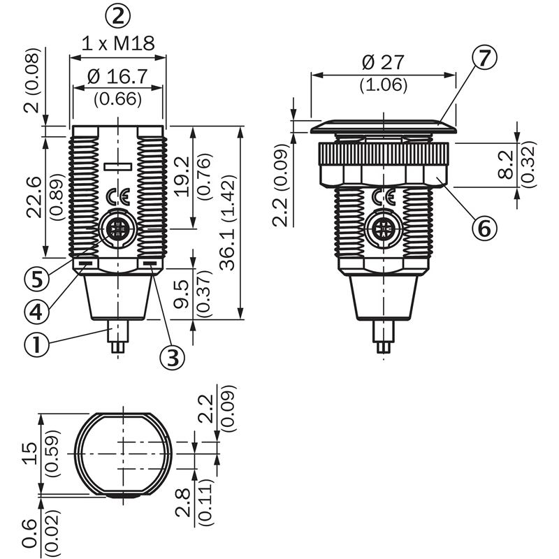 • Format: Cylindrique fileté, M18 x 1, faisceau axial