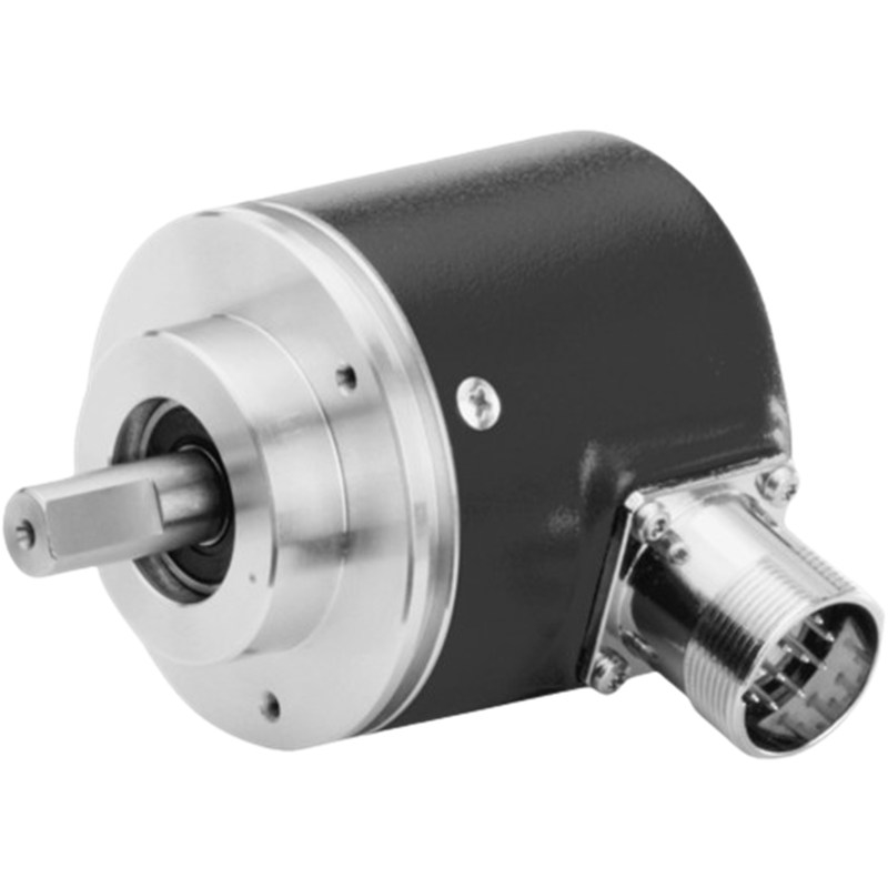 Codeur absolu réseau RS485 avec protocole ASCII, multitour, Ø58 mm à bride synchro et axe Ø6 mm, IP54, résolution 25 bits: ST 13 bits et MT 12 bits, alimentation 10-30 VDC, embase radiale mâle M23 à 12 contacts en sens horaire