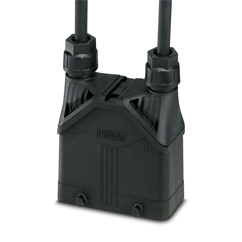 Capot passe-câble HEAVYCONNEC EVO en plastique, avec bride à baïonnette pour deux raccordements vissés EVO, B16, avec verrouillage transversal, hauteur 78 mm, sans raccordement vissé EVO