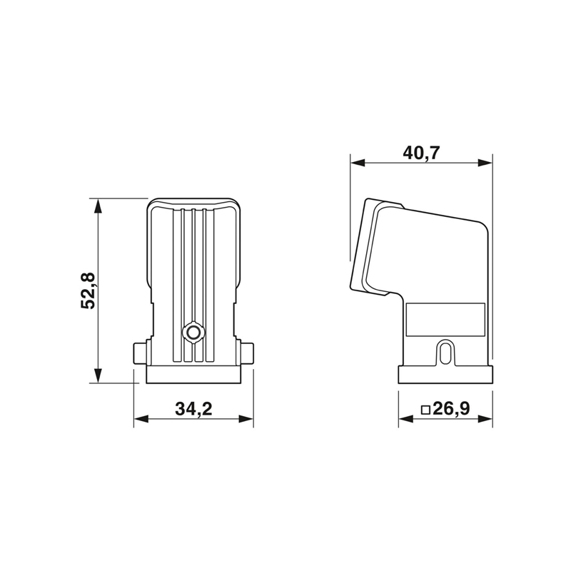 Capot passe-câble D7, pour étrier longitudinal, matériau: Aluminium coulé sous pression, résistant à l'eau de mer, nombre de sorties: 1, latérale, 1x M20, hauteur: 52,8 mm, presse-étoupe: sans, Standard, pour eléments de contact HC-A03, A04, D07, D08, Q02, Q03, Q04, Q05, Q07, Q12