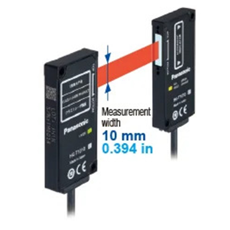 Capteur/micromètre laser à faisceau traversant, largeur de mesure 10 mm, modèle extra-plat, sans indicateur de réglage des axes du faisceau, plage de mesure 0 à 500 mm
