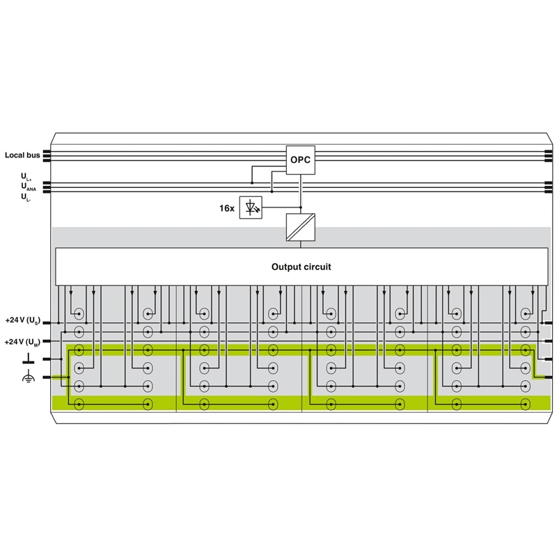 Inline, Module de sortie numérique, Sorties TOR: 16, 24 V DC, 500 mA, connectique: 3 fils, vitesse de transmission dans le bus local: 500 kBit/s, indice de protection: IP20, y compris connecteurs mâles Inline et champs de repérage