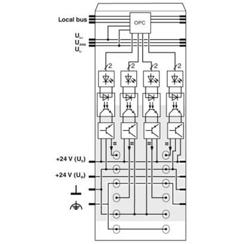 Module de sortie numérique, Sorties TOR: 4, 24 V DC, 500 mA, connectique: 3 fils, vitesse de transmission dans le bus local: 500 kBit/s, indice de protection: IP20, avec Inline contacts et porte-étiquette