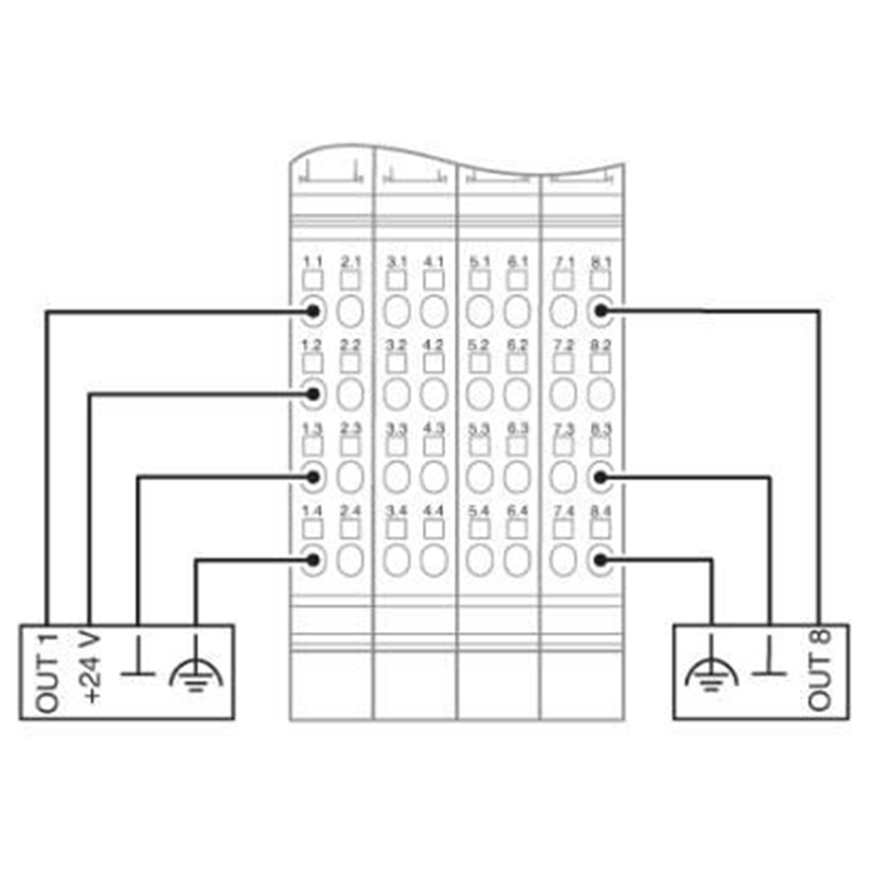 Module 8 sorties TOR 24Vcc 2A, avec connecteurs et étiquettes, INLINE
