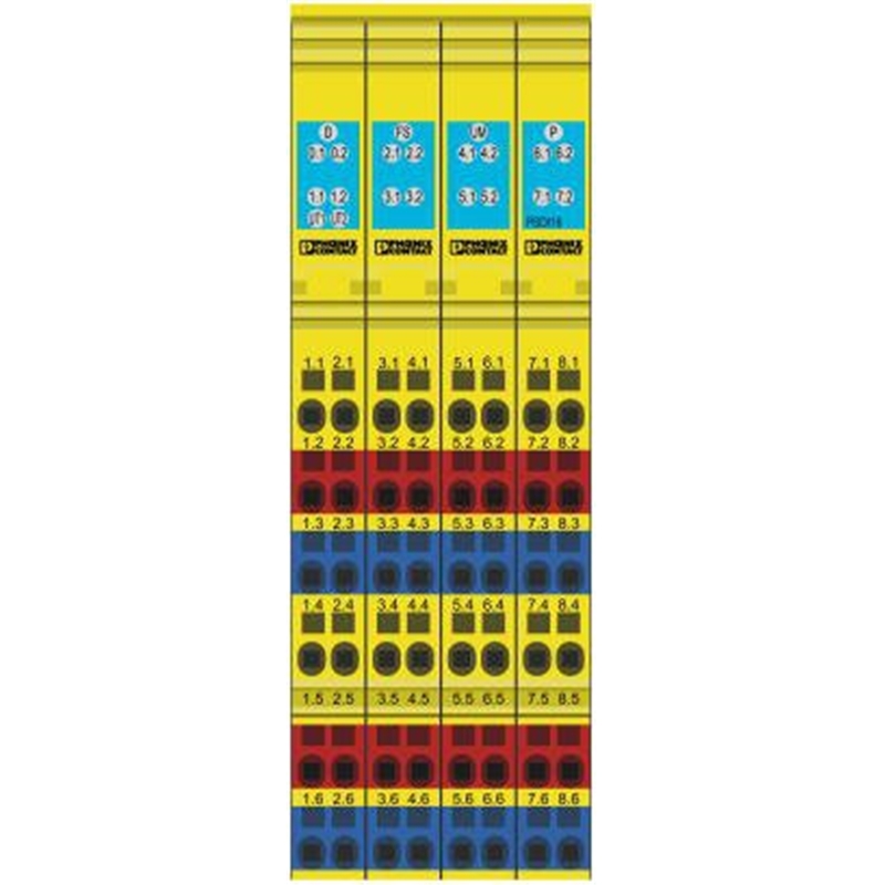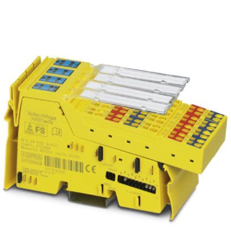Module d'entrées TOR de sécurité, IP20, pour système SafetyBridge, Interbus et PROFIsafe. Le module dispose de 8 entrées tout-ou-rien sécurisées à deux canaux, ou de 16 entrées tout-ou-rien sécurisées monocanale.