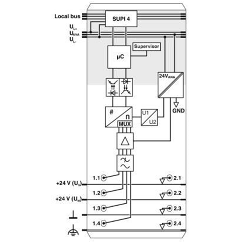 Inline ECO, Module d'entrée analogique, Entrées analogiques: 4, 4 mA ... 20 mA, Technique de raccordement: 2 fils, Vitesse de transmission dans le bus local 500 kBit/s, Indice de protection IP20, connecteur Inline compris