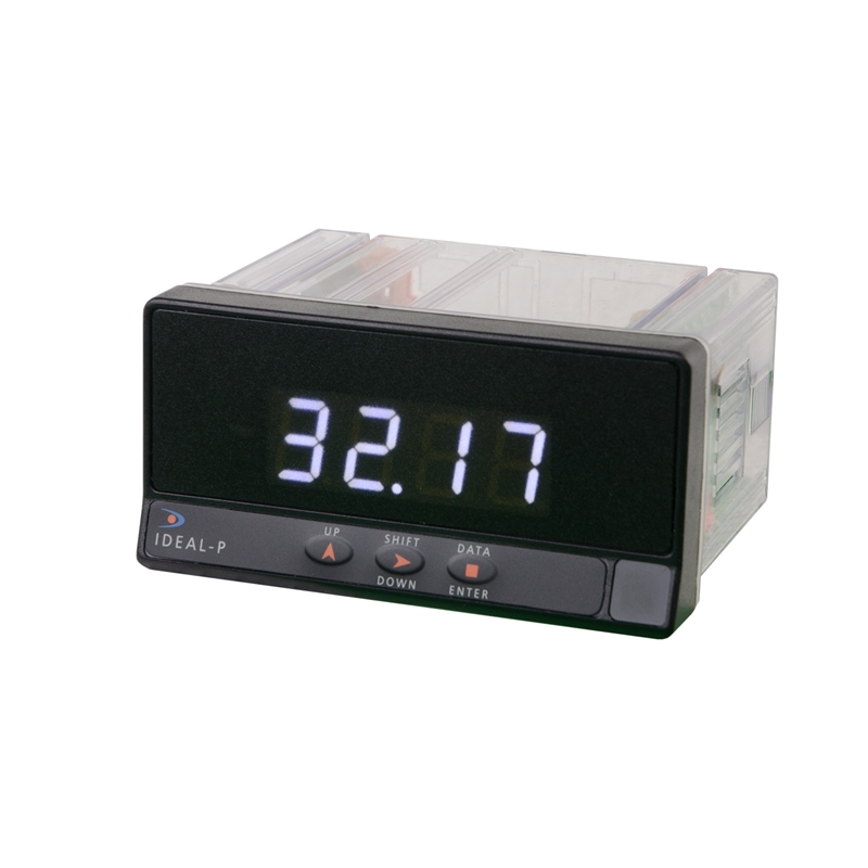 Indicateur de process et température; Format: 48x96mm; Affichage: -9999 ÷ 9999, 14mm LED Blanche; Entrée:- Process: ±10V, ±200V, ±20mA- Température: Pt100, TC J-K-T-N; Sortie alarme: Relais SPDT 8A @ 250Vac; Sortie analogique: 4-20mA (Recopie, Generateur de Consigne); Raccordement: Technologie CAGE CLAMP®; Tension d'alimentation: 20-265Vac/dc; Dimensions: 96 x 48 x 60mm; Découpe panneau: 92 x 45mm; Classe de protection (façade): IP65; Température de travail: -10ºC ... +60ºC