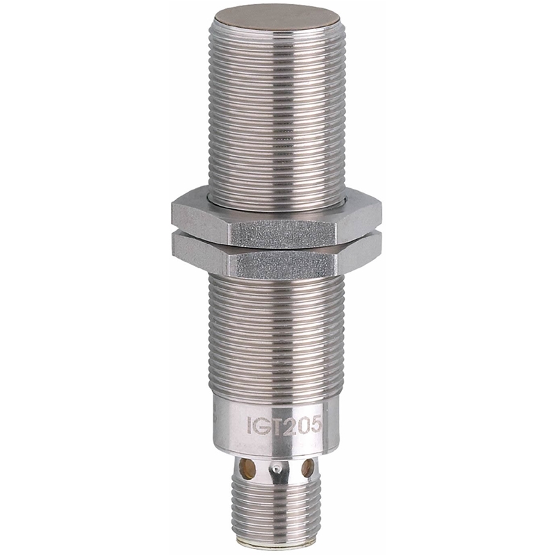 Détecteur inductif résistant à la haute température; Format: Cylindrique fileté, M18 x 1; Version électrique: 2/3 fils DC; Portée: 8 mm; Montage: Noyable; Sortie de commutation: PNP/NPN; Type de commutation: Contact à fermeture (NO); Fréquence de commutation: 400 Hz; Raccordement: Connecteur mâle M12, 4 pôles, codé-A; Tension d'alimentation: 10-30 VDC; Diamètre: Ø 18 mm; Longueur totale du boîtier: 70 mm; Longueur de filetage utile: 55 mm; Matériau du boîtier: Acier inoxydable (1.4404 / 316L); Matériau, surface active: PEEK; Indice de protection: IP 68, IP 69K; Température de fonctionnement: 0...100 °C; Fourniture: 2 écrous de fixation