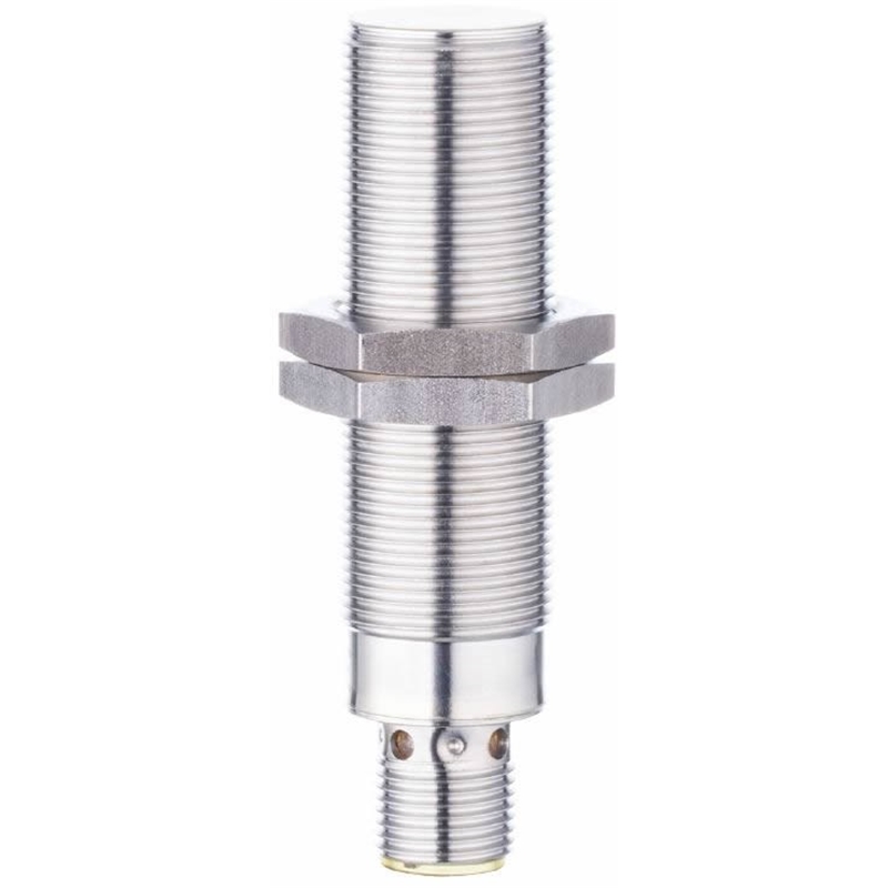 Détecteur inductif résistant à la haute température; Format: Cylindrique fileté, M18 x 1; Version électrique: 3 fils DC; Portée: 8 mm; Montage: Noyable; Sortie de commutation: PNP; Type de commutation: Contact à fermeture (NO); Fréquence de commutation: 400 Hz; Raccordement: Connecteur mâle M12, 4 pôles, codé-A; Tension d'alimentation: 10-30 VDC; Diamètre: Ø 18 mm; Longueur totale du boîtier: 70 mm; Longueur de filetage utile: 49 mm; Matériau du boîtier: Acier inoxydable (1.4404 / 316L); Matériau, surface active: PEEK; Indice de protection: IP 68, IP 69K; Température de fonctionnement: 0 °C ... +100 °C; Fourniture: 2 écrous de fixation
